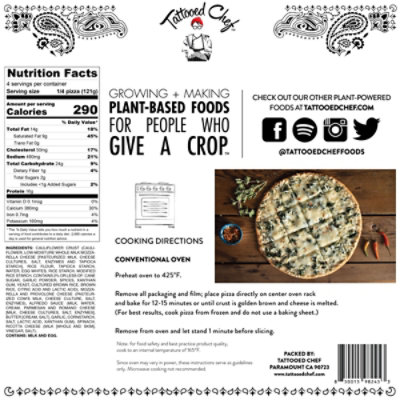 Plant Based Vegetable Pizza. Carefully remove film and heat for an additional 2-3 minutes or until heated. Get full nutrition facts for other Tattooed Chef products and all your other.